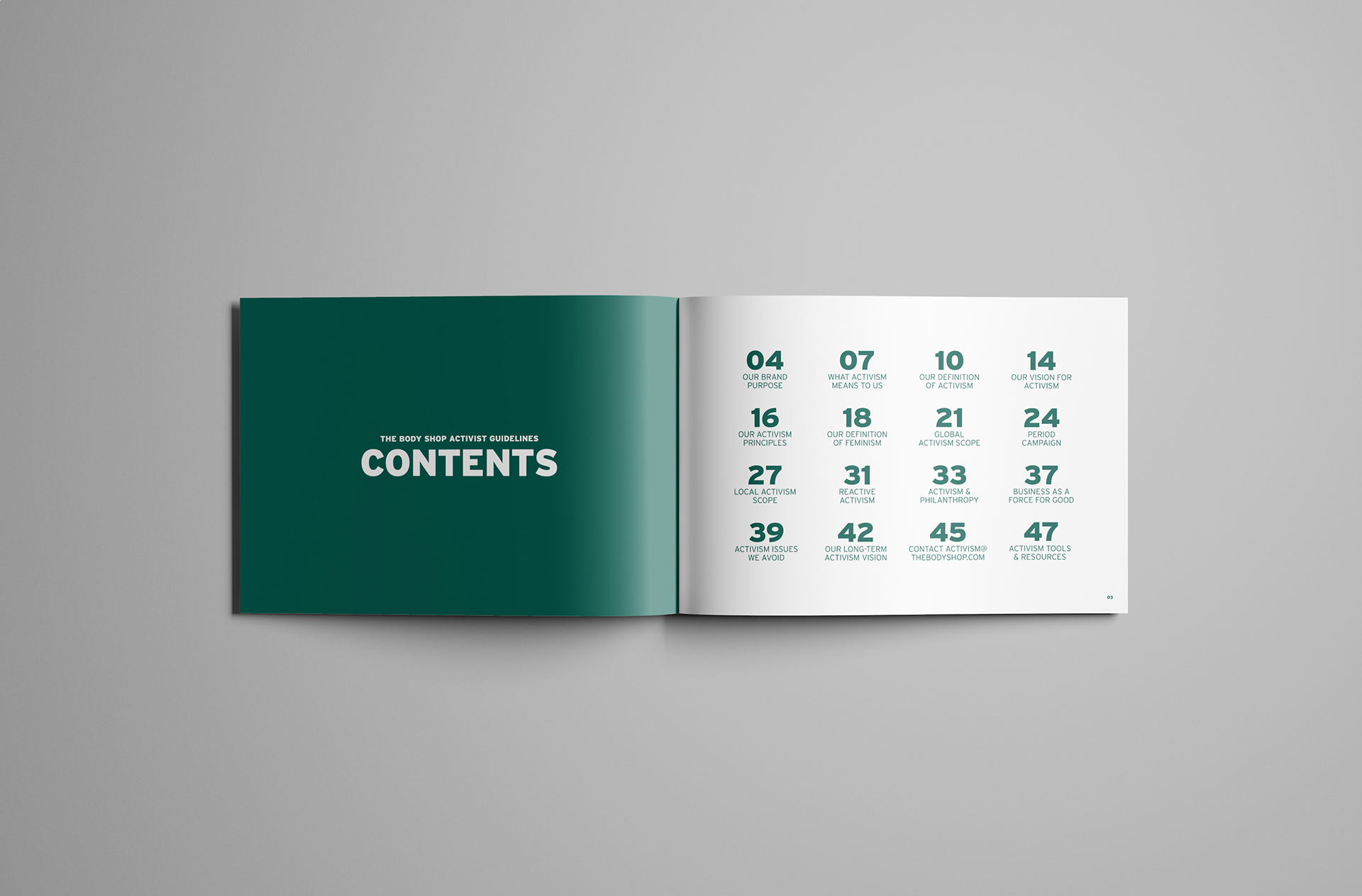 The Body Shop’s guidelines on activism. Includes case studies on women’s rights, the environment and equality and how to take part for a fairer and more beautiful world.